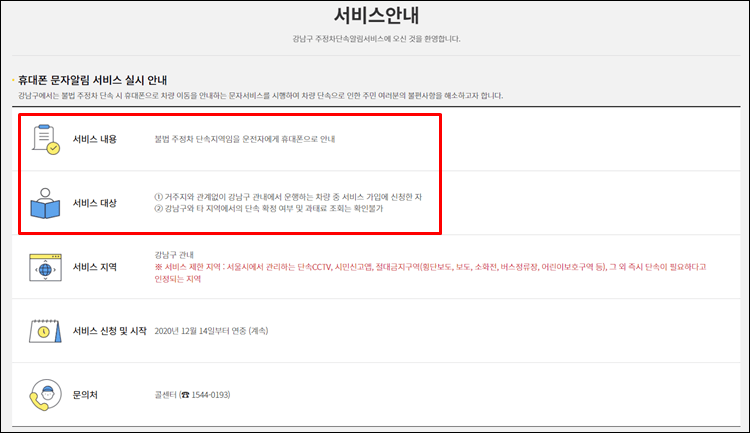 강남 주정차알림서비스 홈페이지를 방문하시면 손쉽게 서비스를 안내받으실 수 있습니다.