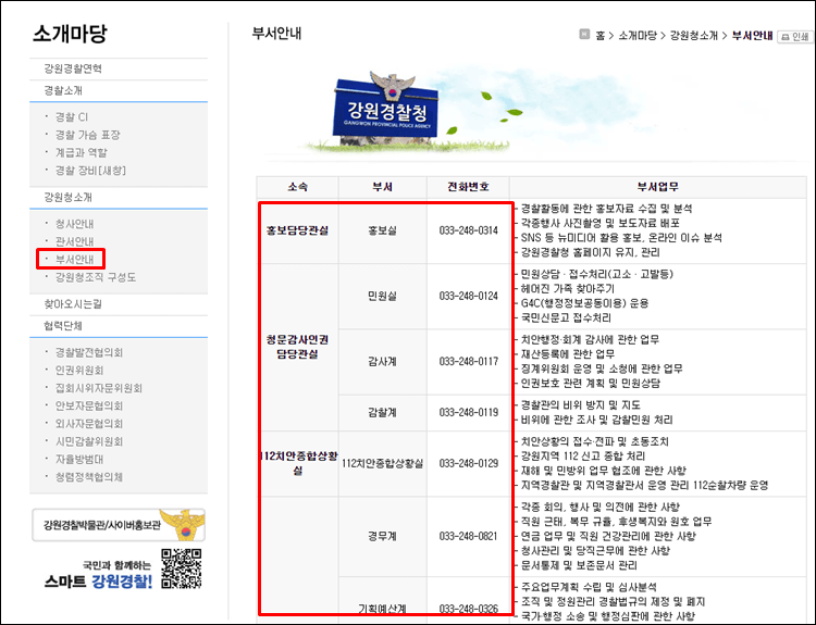 강원경찰청 홈페이지 민원실 전화번호 바로가기