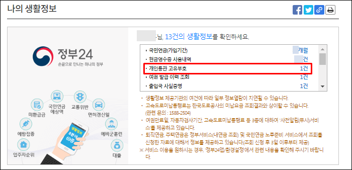 정부24 홈페이지를 방문하시고, 아이디 로그인을 하시면 my gov라는 개인 생활정보 서비스를 이용하실 수 있습니다.