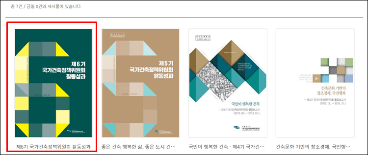 건축정책위원회의 활동보고서를 보면 매 기수마다의 활동성과 보고서가 나오는 것을 보실 수 있습니다.
