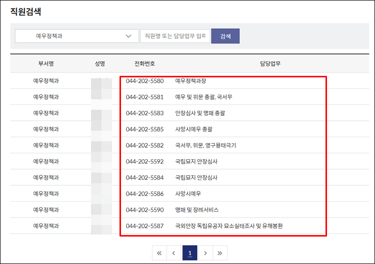 3. 국가보훈부 직원 이름 및 전화번호 바로가기