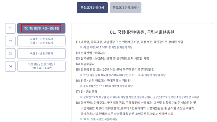 3. 국립묘지 안장대상 알아보기