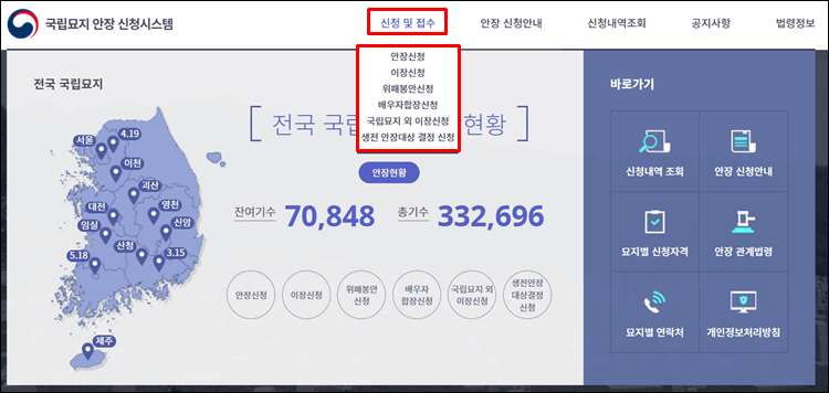 1. 국립묘지 안장 신청시스템 바로가기
