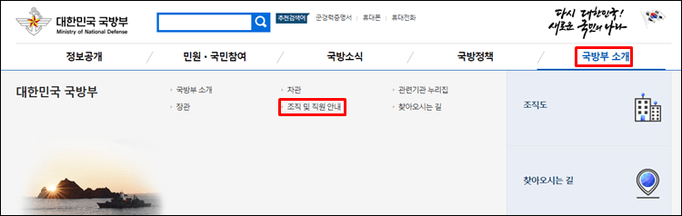 국방부 홈페이지 조직도 및 전화번호 조회방법