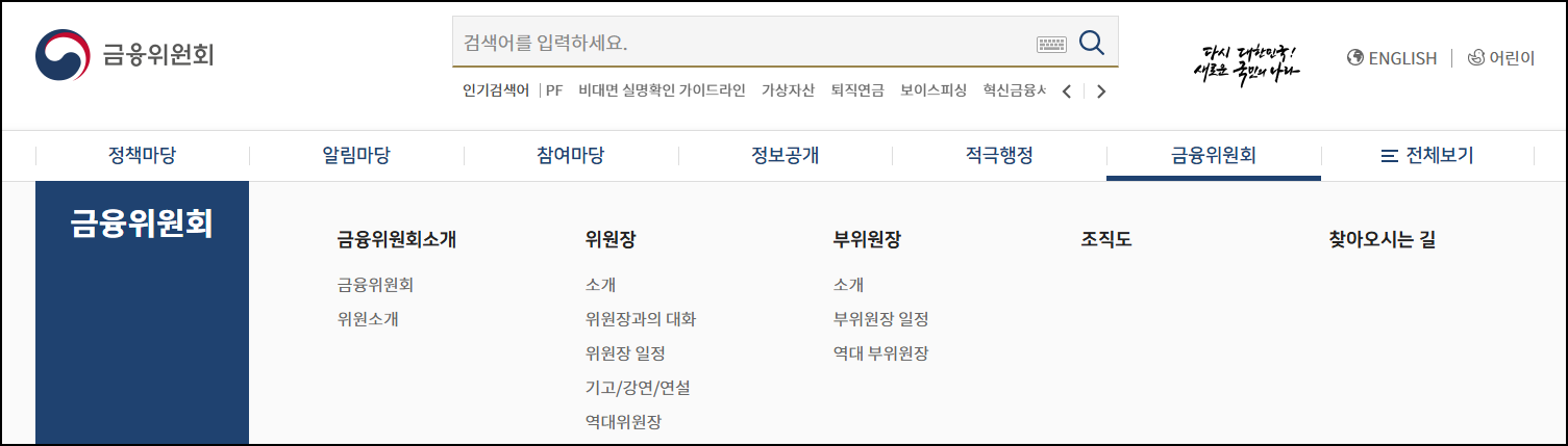 1. 금융위원회 홈페이지 바로가기