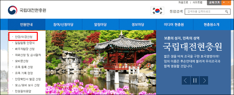 1. 대전현충원 홈페이지 바로가기