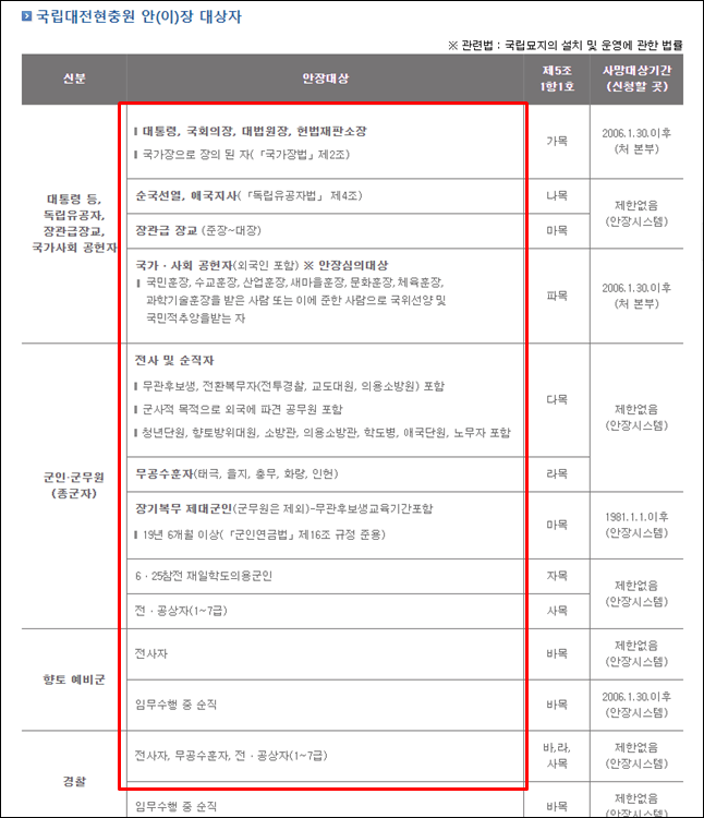 2. 현충원 안장대상자
