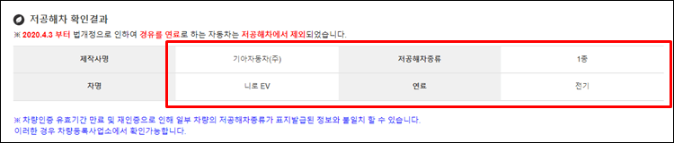 아래와 같이 저공해차 확인 화면이 나오는 것을 보실 수 있습니다.