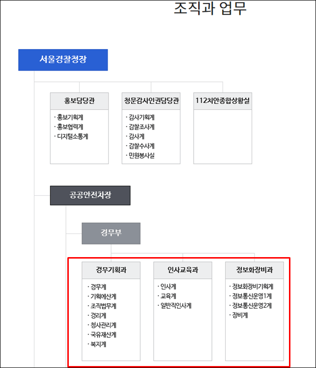 아래와 같이 서울경찰청의 부서들이 나오는 것을 보실 수 있습니다.