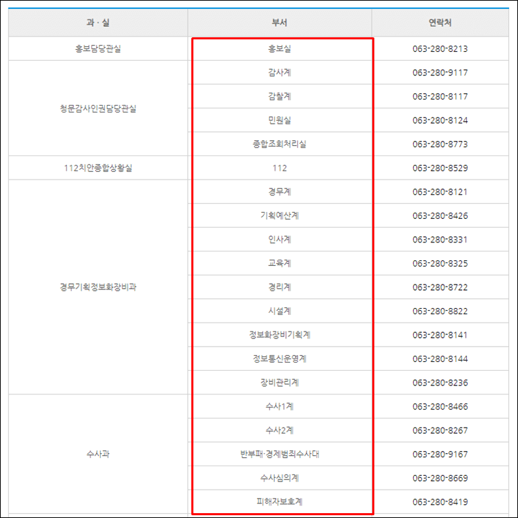 📌전북경찰청 부서안내