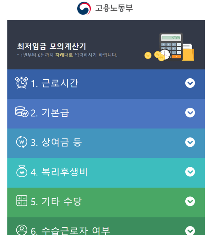 1. 고용노동부 최저임금 모의계산기 바로가기