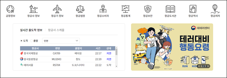 항공정보포털 항공기 운항스케줄 조회방법 바로가기