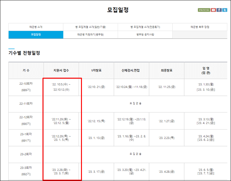 해군모집-모집일정