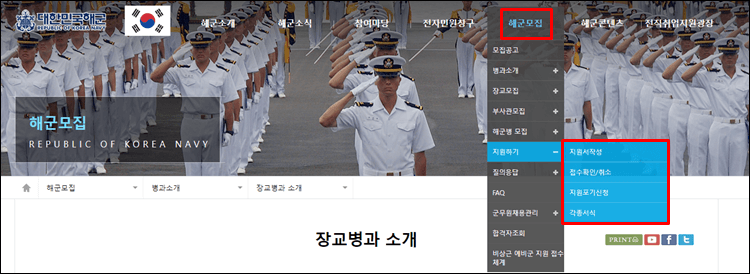 해군모집 홈페이지 모집일정 및 지원서작성 바로가기