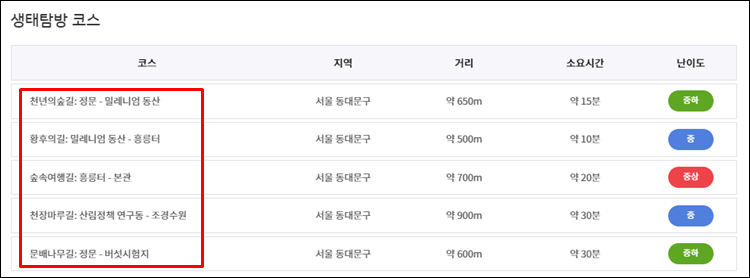 3. 홍릉숲 탐방로 살펴보기