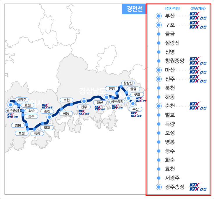 S-train은 남도해양열차라고 해서 전라선과 경전선 두 가지의 노선을 가지고 있습니다.