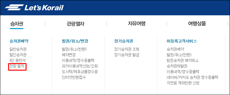 승차원 예약탭의 관광열차를 선택해 보세요.